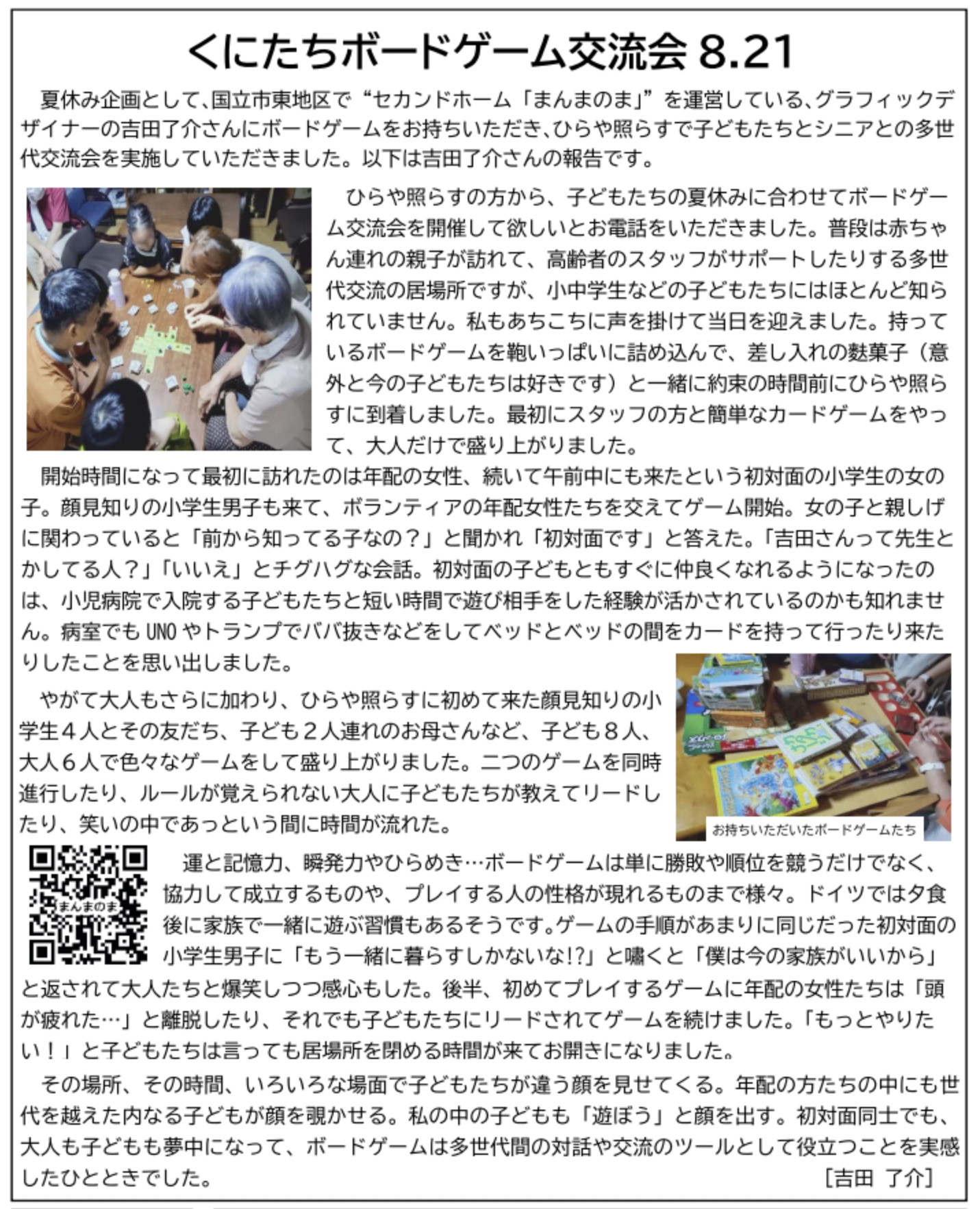 ひらや照らす通信2025年10号に夏休みボーボゲーム交流会の記事を掲載していただきました。